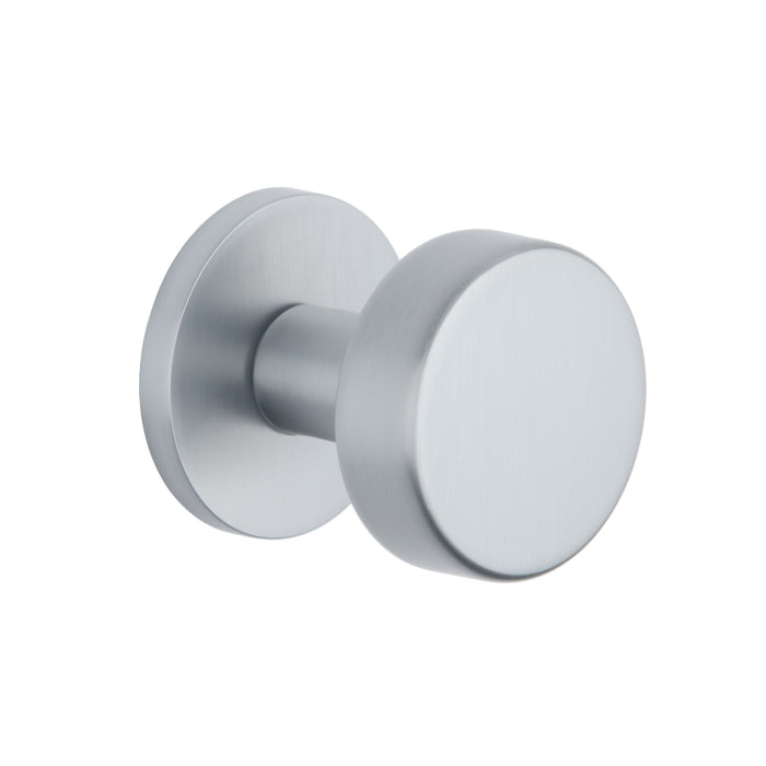 Massieve Aprile deurknop Ruta mat chroom uit de Comfort collectie. Deze deurknop staat op een rond rozet van Ø53 mm met een dikte van 7 mm en wordt per stuk geleverd inclusief metalen onderrozet en bevestigingsmaterialen. Deze massieve deurknop is geveerd en dus draaibaar. Tevens is het onderrozet voorzien van nokken waardoor het beter blijft zitten. De Aprile deurknop Ruta mat chroom is ook in vaste uitvoering of per paar leverbaar. De massieve Aprile deurklink is geschikt voor binnendeuren met een deurdikte tot 44 mm. Voor bredere deuren kunnen we langere bevestigingsmaterialen meeleveren. Let op: Het is belangrijk bij bestelling aan te geven naar welke kant de knop moet draaien.