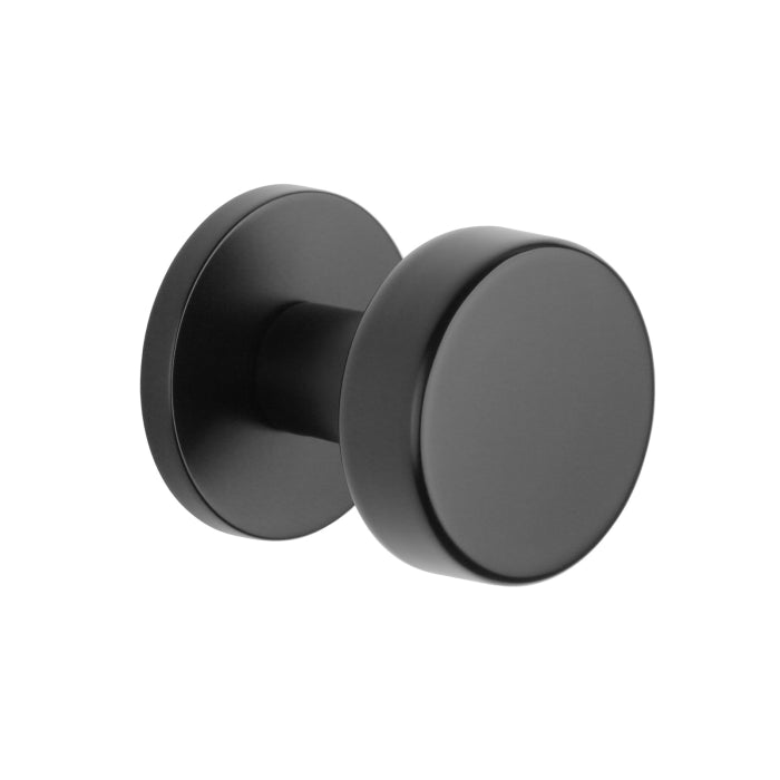Massieve Aprile deurknop Ruta zwart uit de Comfort collectie van Aprile. Deze deurknop staat op een rond rozet van Ø53 mm met een dikte van 7 mm en wordt per stuk geleverd inclusief metalen onderrozet en bevestigingsmaterialen. Deze massieve deurknop is geveerd en dus draaibaar. Tevens is het onderrozet voorzien van nokken waardoor het beter blijft zitten. De Aprile deurknop Ruta zwart is ook in vaste uitvoering of per paar leverbaar. De massieve Aprile deurklink is geschikt voor binnendeuren met een deurdikte tot 44 mm. Voor bredere deuren kunnen we langere bevestigingsmaterialen meeleveren. Let op: Het is belangrijk bij bestelling aan te geven naar welke kant de knop moet draaien.