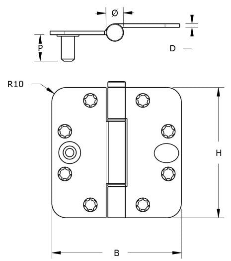 Dulimex Glijlagerscharnier ronde hoeken 3 mm 80x89 mm SKG3 Staal Verzinkt