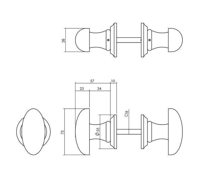 Kenmerken Intersteel | Knopkruk Glad met Ronde Rozet | Ovaal | Beukenhout